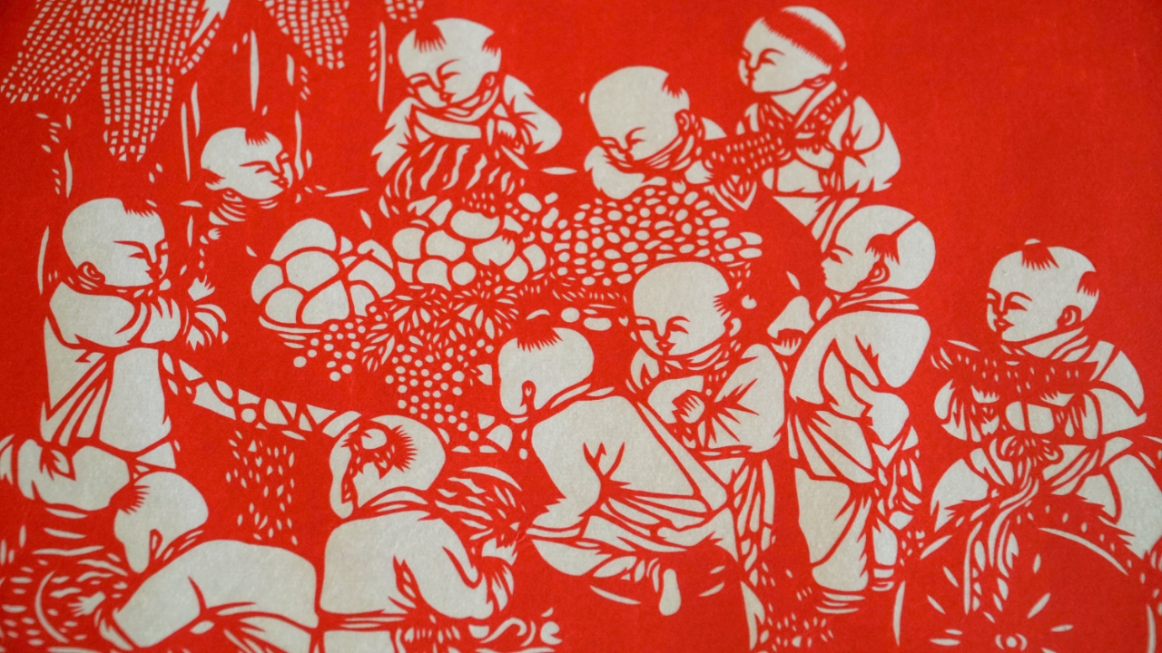 赵增涛剪纸作品《百子图》局部。