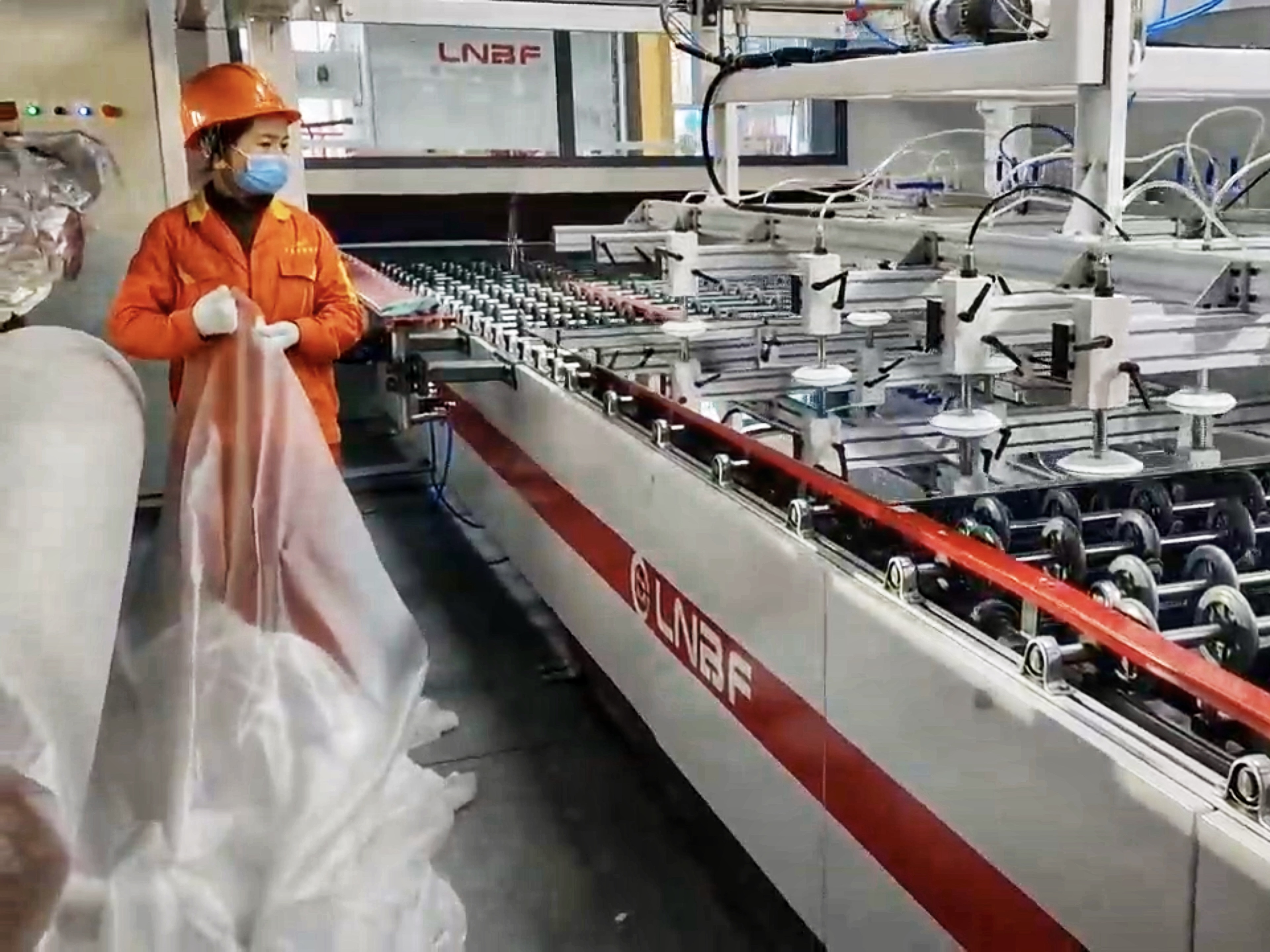 古雁建材生产车间内,工人正根据订单需求加工玻璃。