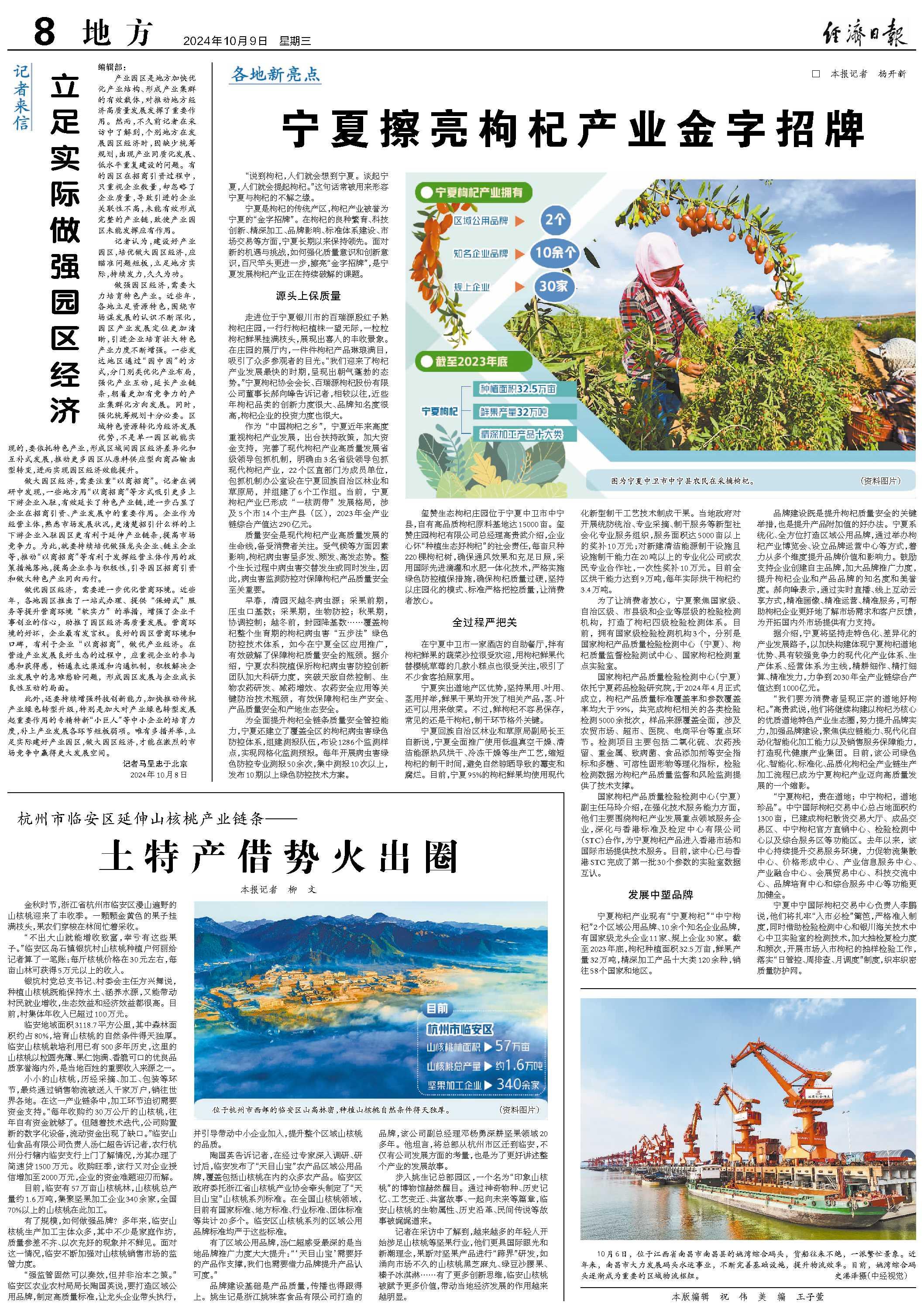 宁夏是枸杞的传统产区,枸杞产业被誉为宁夏的“金字招牌”。在枸杞的良种繁育、科技创新、精深加工、品牌影响、标准体系建设、市场交易等方面,宁夏长期以来保持领先。面对新的机遇与挑战,如何强化质量意识和创新意识,百尺竿头更进一步,擦亮“金字招牌”,是宁夏发展枸杞产业正在持续破解的课题。
