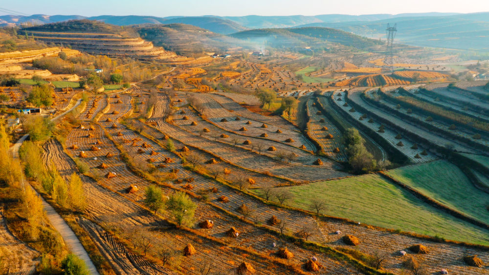 彭阳县多彩梯田勾勒出如画秋景。新华社发