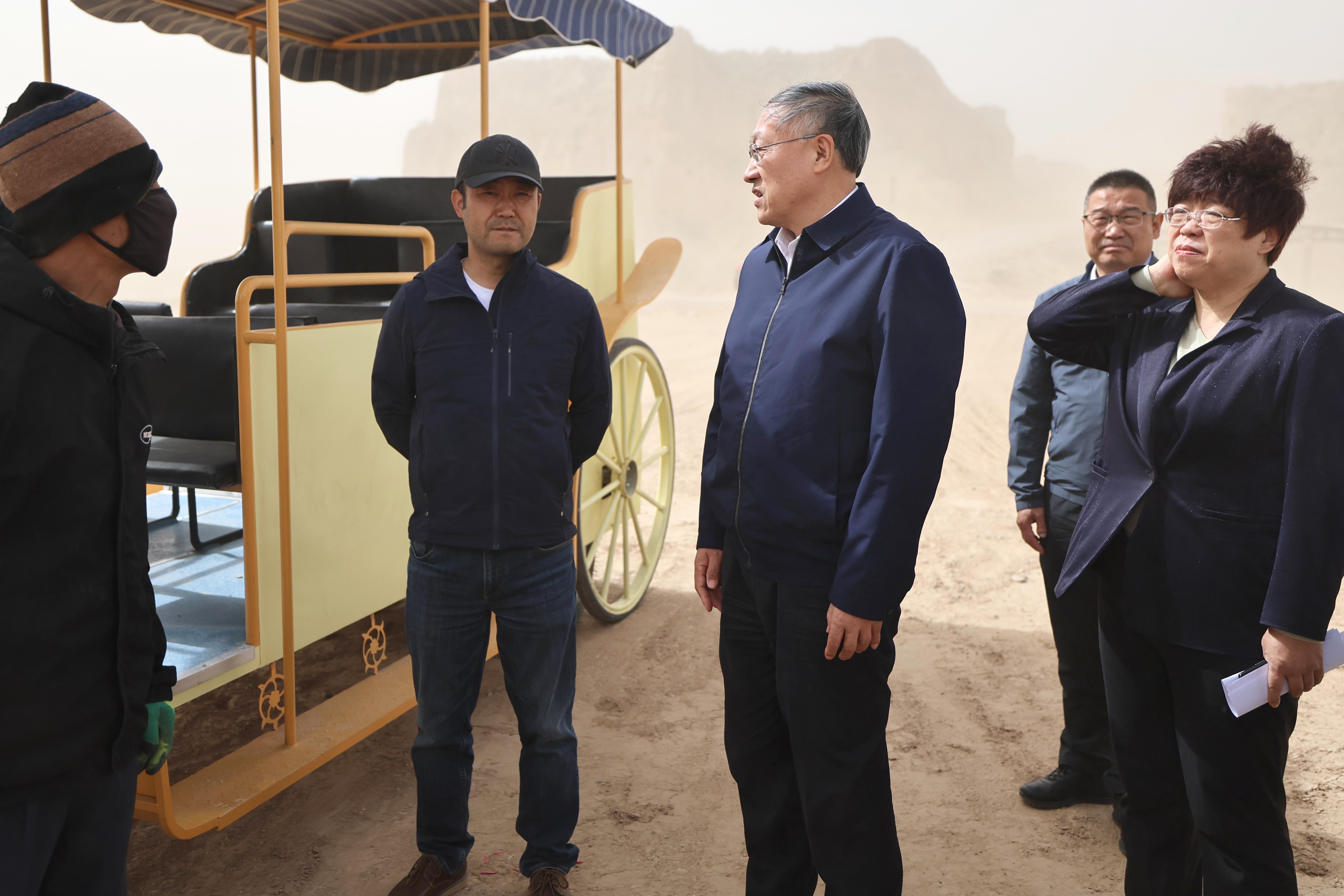 李邑飞前往水洞沟旅游区,通过监控画面了解风力大小、入园人数和重点点位管控,深入沙枣湾、红山湖码头实地察看设施维护、人员疏导等情况。他强调,大风扬沙天气旅游安全风险不容忽视,要全力做好防范应对,加强研判会商和应急指挥调度,及时发布提示信息,进一步强化管控措施,快速有效处置突发状况,有力保障游客和工作人员安全。