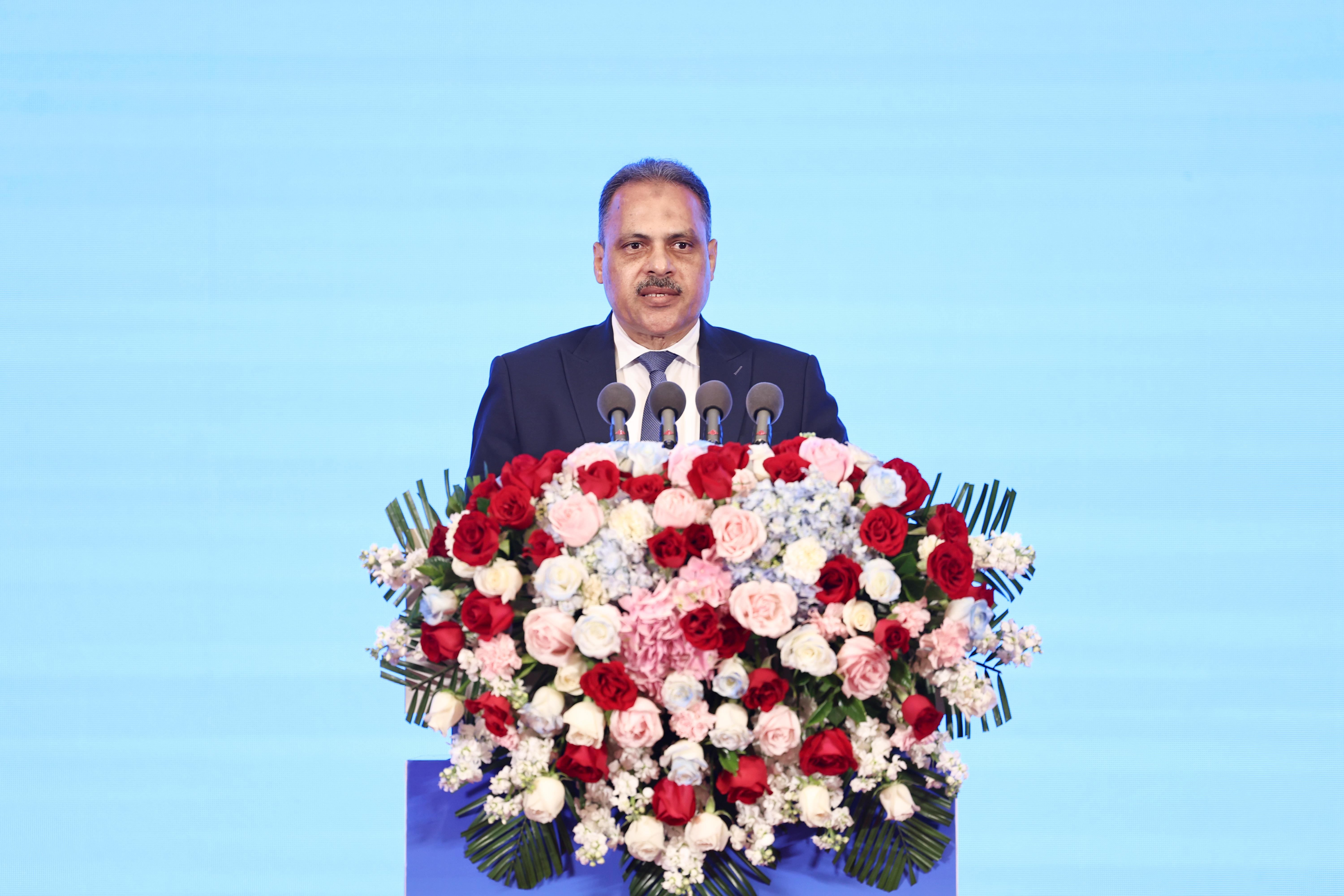 埃及东部省省长哈兹姆·阿什穆尼,斯里兰卡—中国社会合作文化协会主席英德拉南德·阿贝塞克拉致辞。
