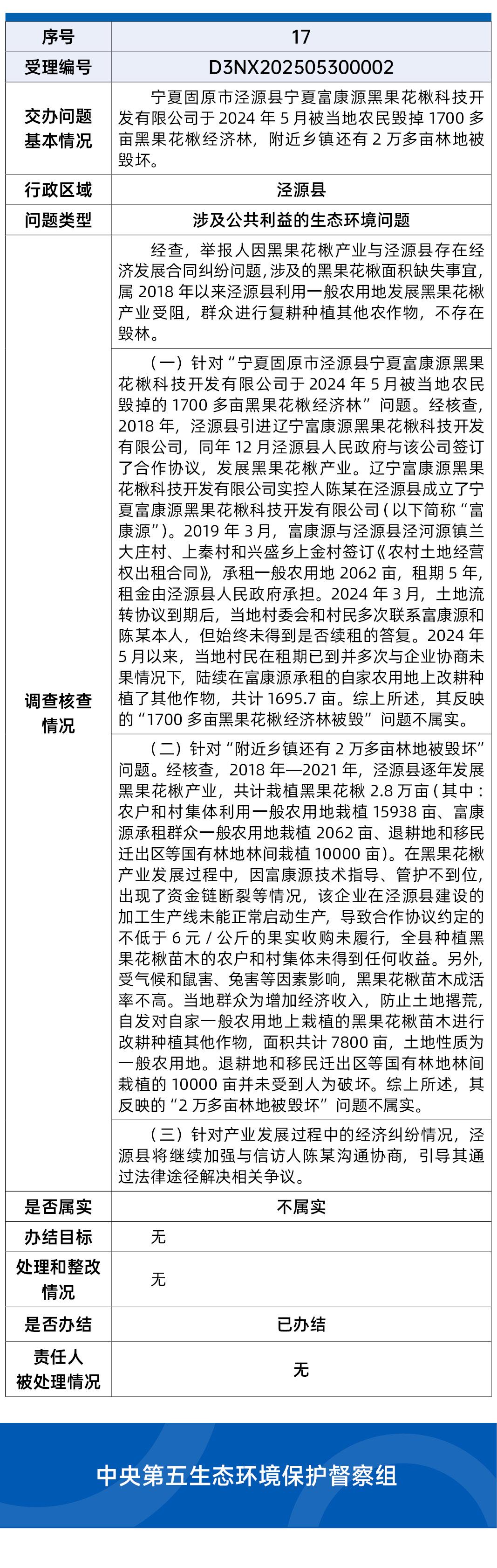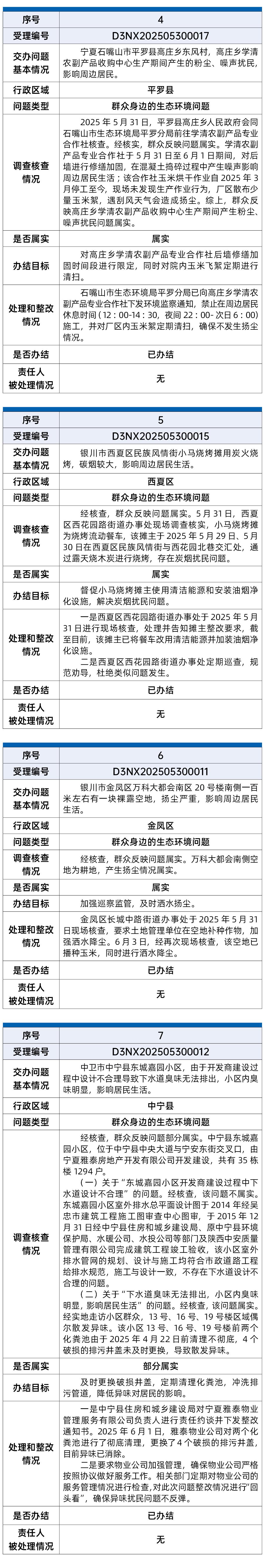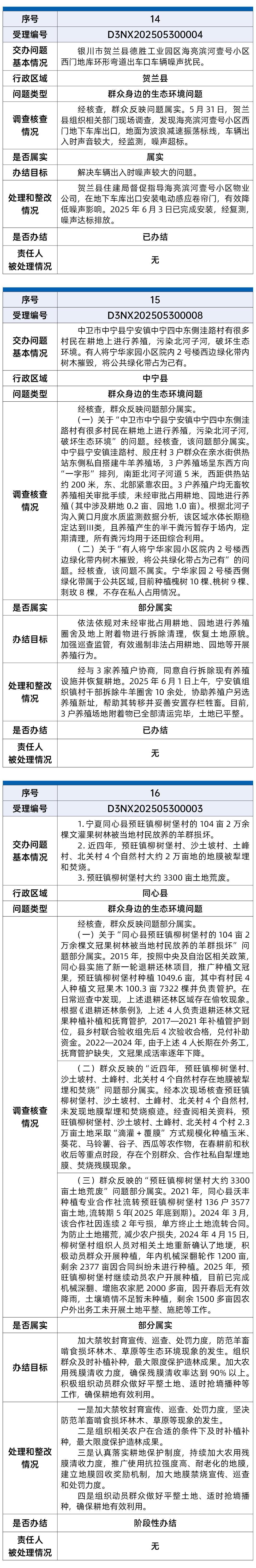 截至6月9日,中央第五生态环境保护督察组向宁夏回族自治区转办的第二批17件信访件,已办结11件,阶段性办结6件。根据督察要求,现予以公开。