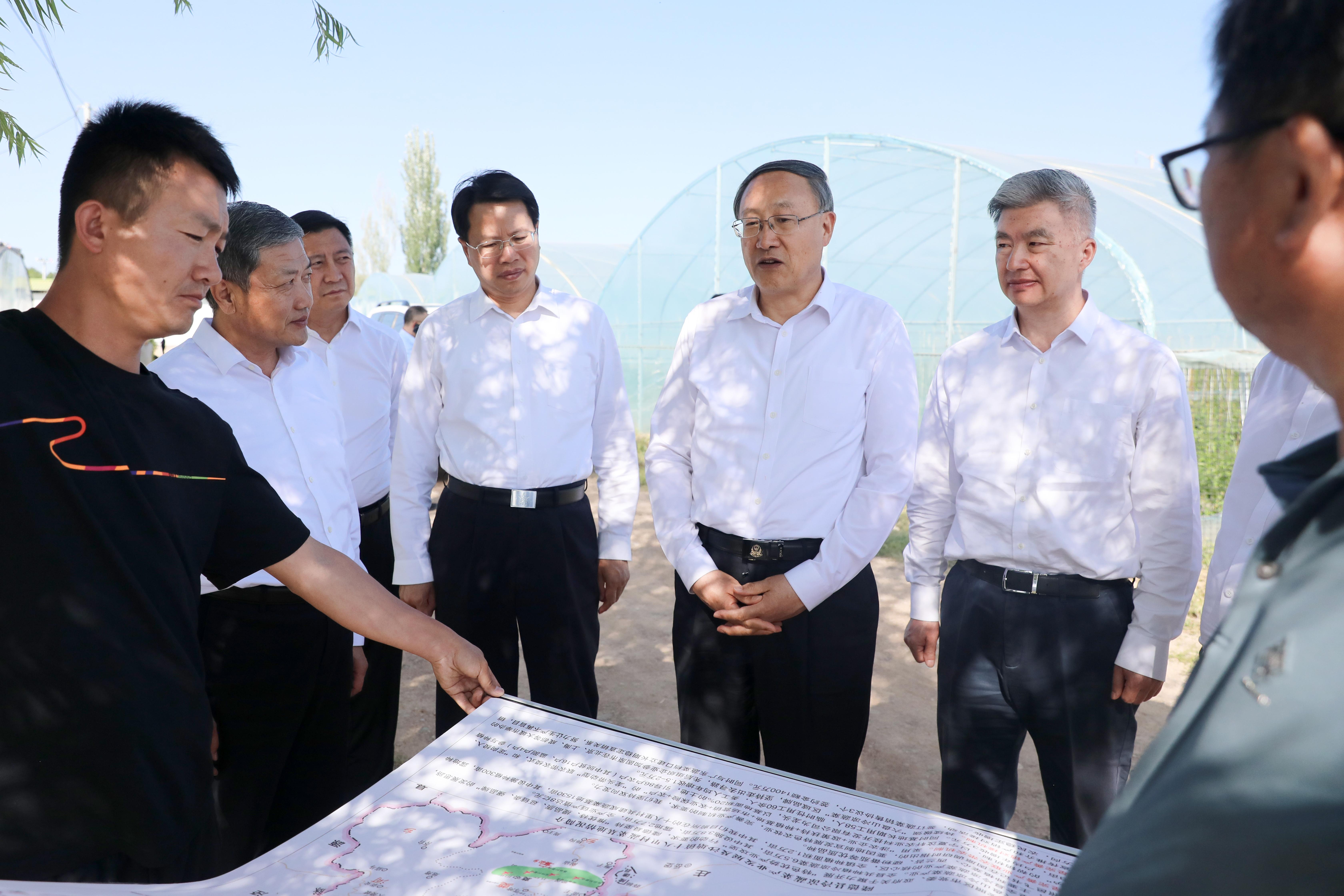 李邑飞在吴忠市红寺堡区大河乡龙源村,调研发展设施农业和联农带农情况。吴忠市新闻传媒中心记者谷刚/图