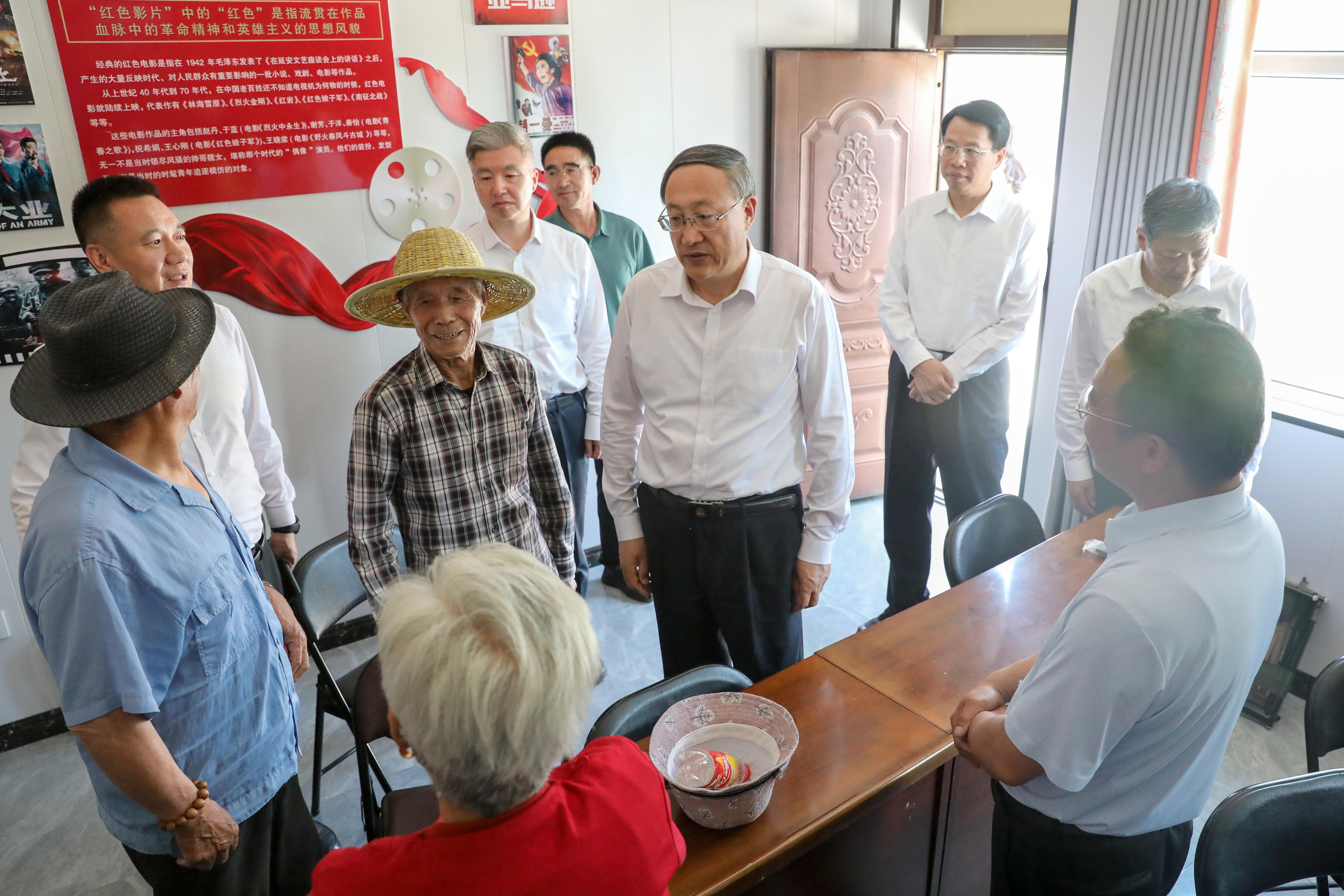 李邑飞在吴忠市红寺堡区新庄集乡红川村,与基层干部、群众座谈交流。吴忠市新闻传媒中心记者谷刚/图