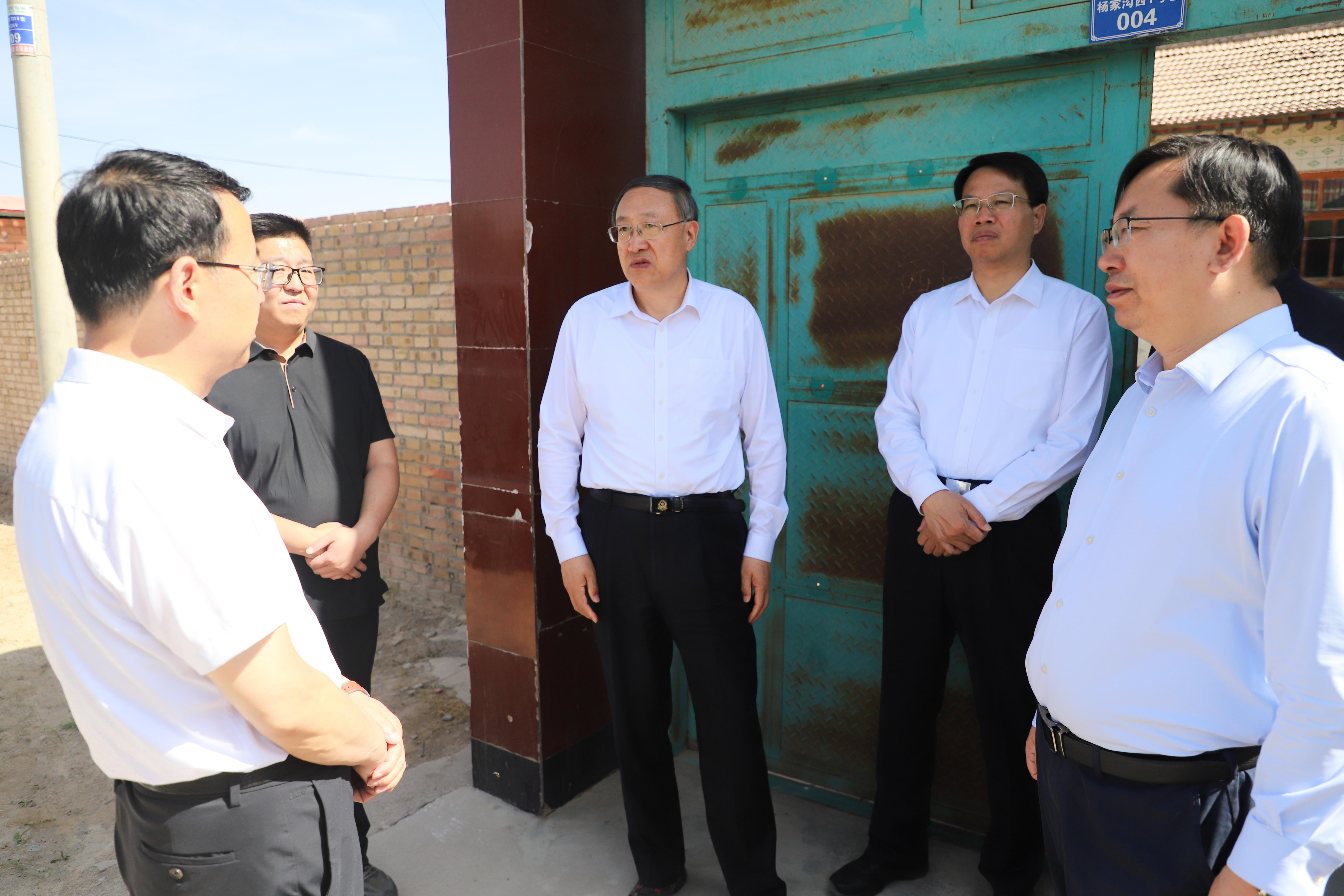 李邑飞在海原县海城镇杨家沟村,了解生活污水排放情况。中卫市新闻传媒中心记者杨雪/图