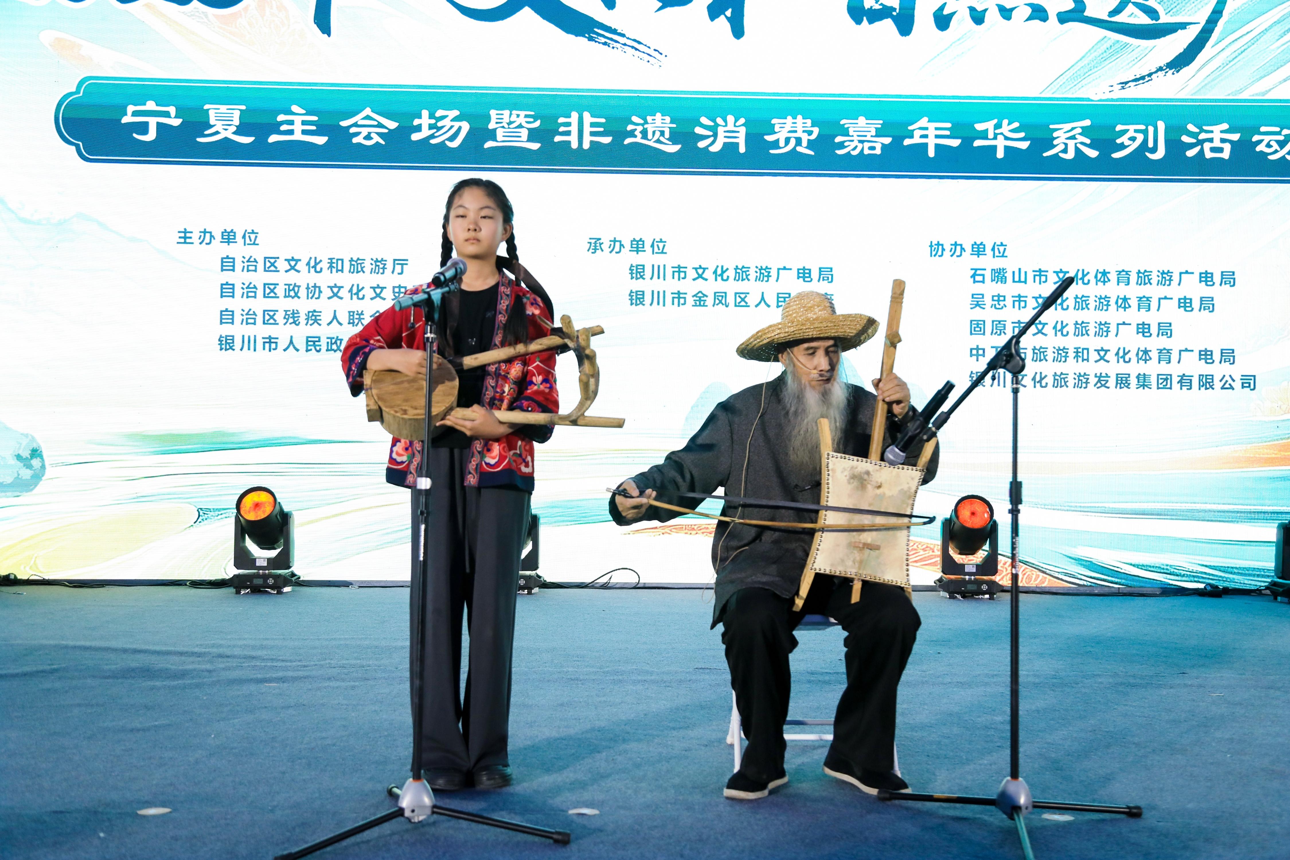 在主场活动中,宁夏五个地级市的非遗代表节目轮番登场,银川市以非遗器乐合奏《大河初音》开篇,交织出塞上江南的空灵意境;石嘴山市创新非遗剪纸旗袍秀《星海湖风韵》,将传统技艺与现代时装艺术完美融合;吴忠市《武术传承》刚柔并济、内外兼修;固原市秦腔选段《看大戏》高亢激越、引人入胜;中卫市海原花儿联唱《花儿绽放新时代》,以原生态唱腔唱响乡村振兴新篇章。现场还发布了贺兰山东麓非遗旅游线路,并为银川市第六批非遗传承人进行授牌。