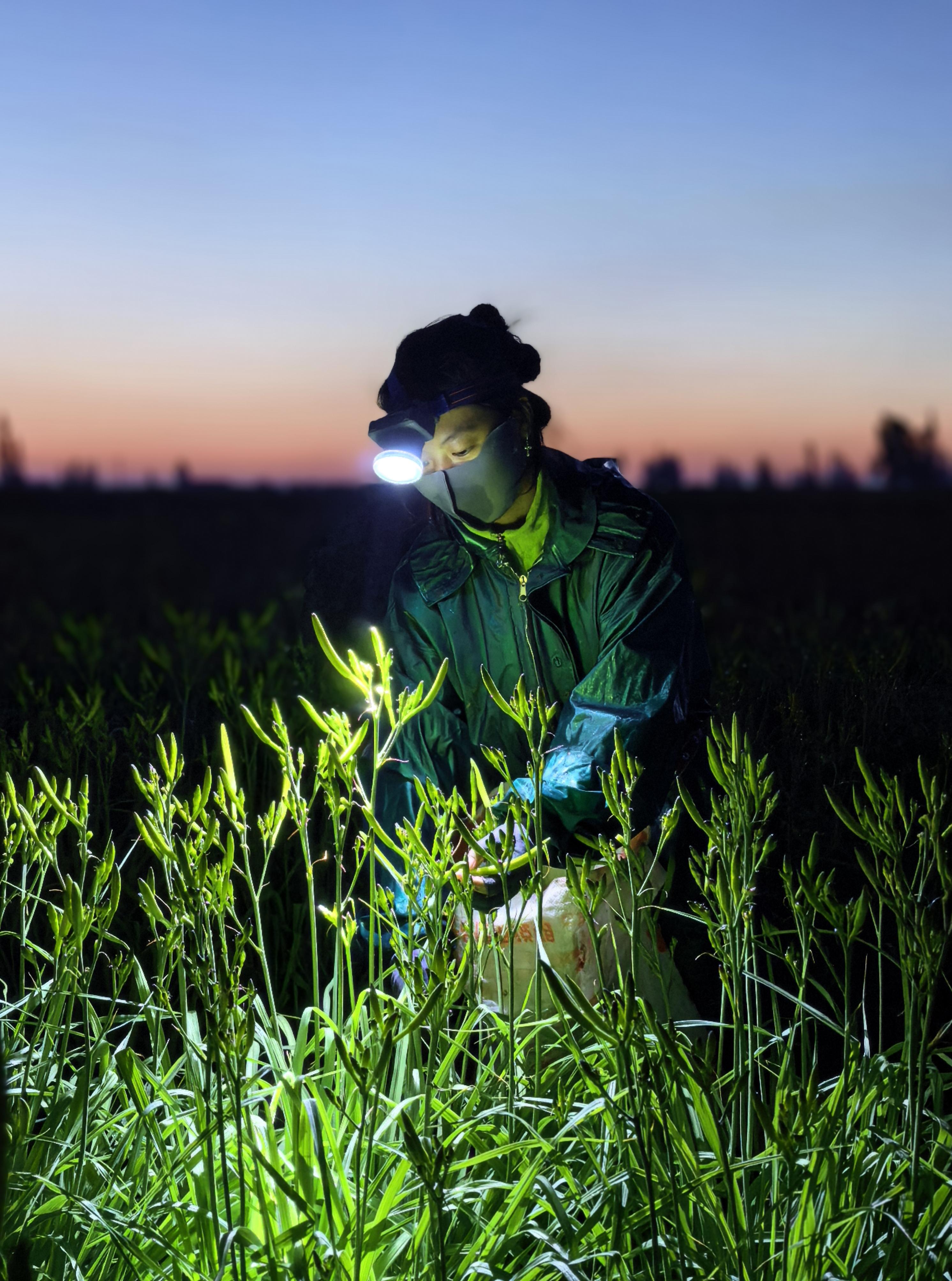 二等奖组照作品《黄花菜的奏响》,凌晨摘菜。牛宝林 摄