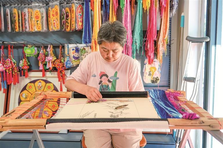 “刚开始,很多姐妹自信心不足,担心学不会,我就手把手地从最基础的刺绣技巧教起。”王海娟说。她还特意为行动不便的员工,设计了适合轮椅使用的绣架,为视力不好的员工设计了放大版的刺绣图案。成立刺绣工作室后,她还不定期举办粉丝线下交流活动,大家聚在一起切磋技艺、分享快乐。“看着她们的技艺从生疏到娴熟,性格从自卑到自信,我觉得特别有意义。”王海娟自豪地说。