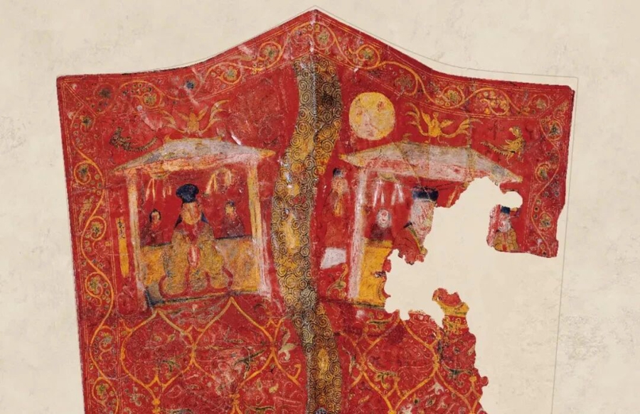1500多年前的北魏彩绘漆棺画,成为早期民族融合的珍贵图像记录。中原传统孝子故事出现在棺侧档上部,如一幅长长的连环画,但画中人物的穿着,却是北方游牧民族鲜卑族的样式;波斯著名的连珠龟背纹图案现身棺侧档中部;下部鲜卑武士策马狩猎的场面,则尽显中亚文化与鲜卑文化的混搭。