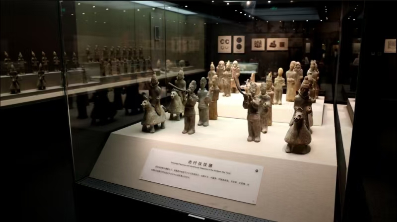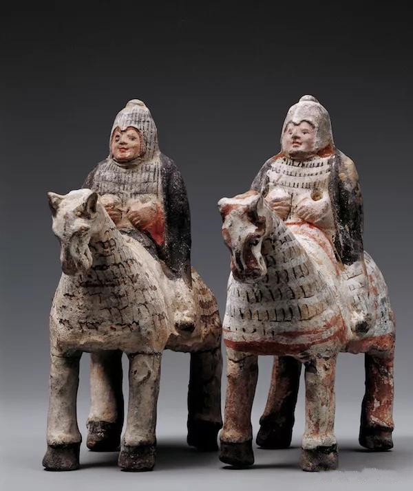 也别忘了,李贤乃经历北魏、西魏、北周三朝的铁血将军。其墓出土的蔚为壮观的仪仗俑中,一排具装甲骑俑成为研究古代军事装备和草原民族文化的宝贵材料。只见战马垂首站立,骑俑头戴尖顶兜鍪,两侧有护耳,身着铠甲,外罩披风,威风凛凛。
