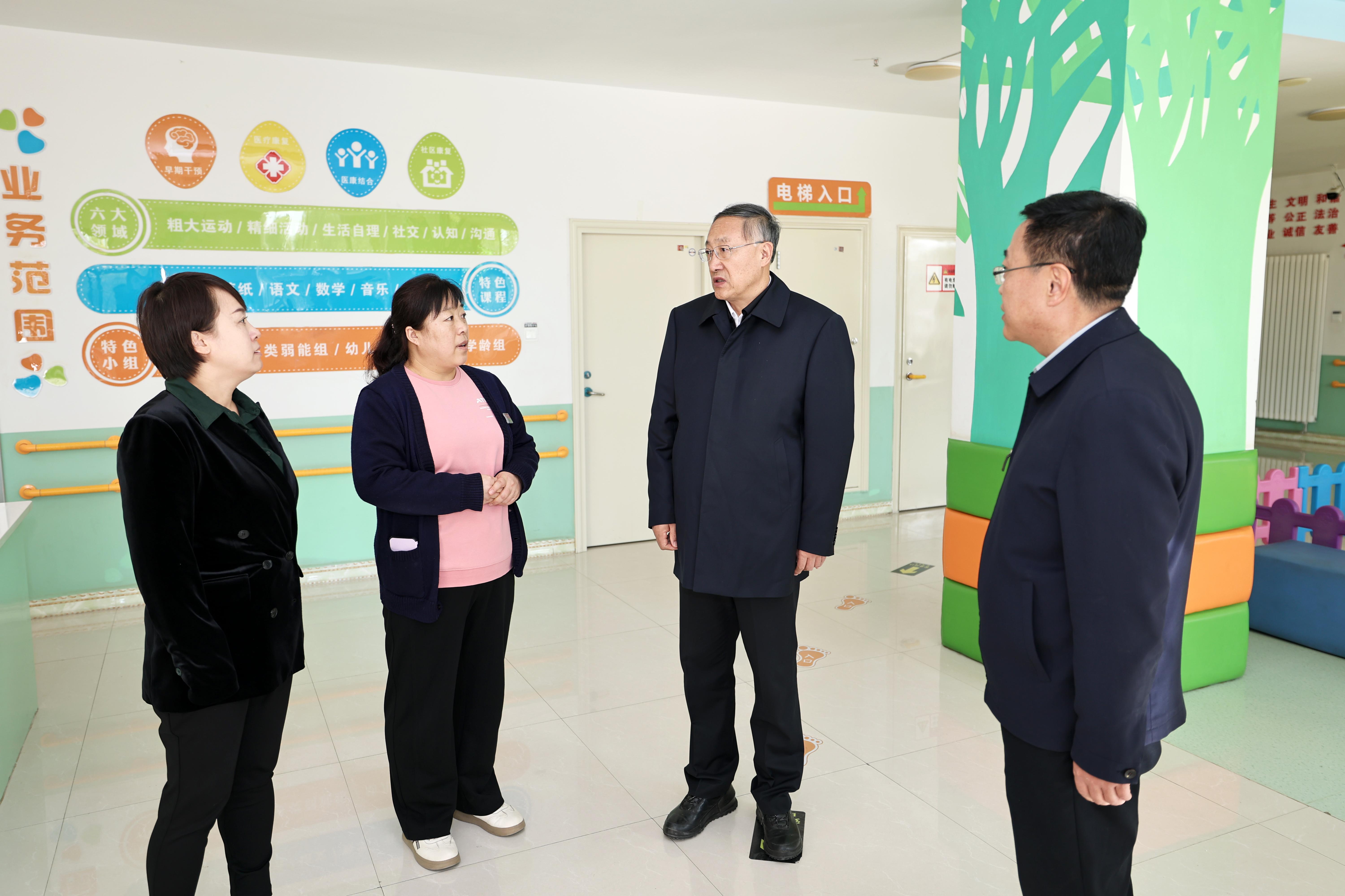 李邑飞在红寺堡区残疾人康复中心,调研残疾儿童治疗、康复和教育情况。