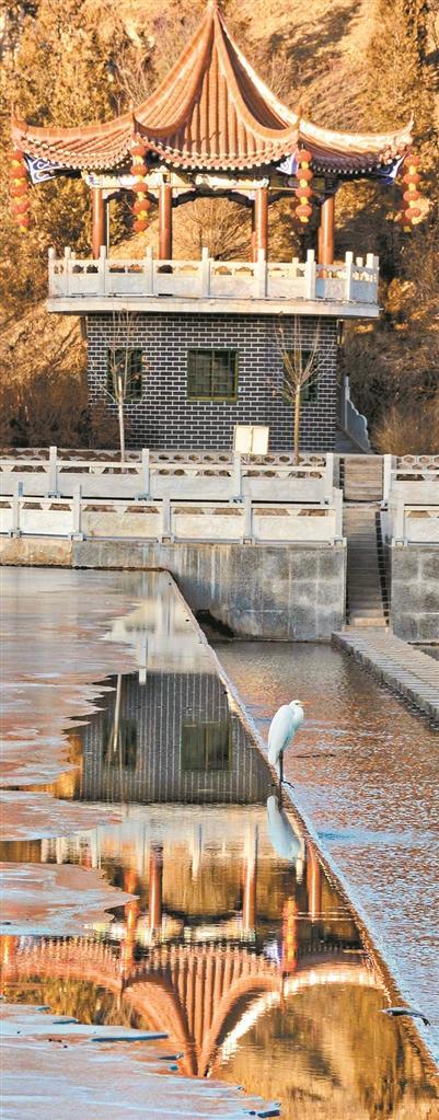 秋日清晨,水面上白雾升腾,红亭青丘披上轻盈薄纱,似佳人侧卧河岸,朦胧动人。朝阳升起,不一会儿,雾散云飞,园内之景更显明了。眺望远方,杨柳如烟,随风飘动,有的金黄,有的淡绿,各种色彩在低空交织,又相融于水,将河水染成多彩的绸缎。近处,水声鸟语作乐,声声悦耳,静听潺潺流水,感受其中的律动与哲思。河水依地势东流,漾起暖金色波光。河水虽不知前路,却从容不迫,向前流去,丰水期略显湍急,枯水时则缓缓而行——千百年来,茹河始终遵循自然规律,以独有节奏应对外界变化。