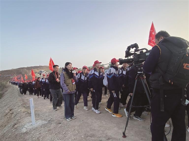 当4时50分直播信号准时推出,我们与3200多名师生一同踏上跨越30年的“行走的思政课”。开播仅一小时,全网观看量已突破50万。评论如潮水般涌入直播间,我们特别开设的“云祭奠”专区,让全国网友与现场学子同“屏”祭扫,形成跨越时空的情感共鸣。这场直播最终创造了全网观看累计超过1亿人次的传播盛况,直播信号被人民网等55家媒体平台转播。大家看到了这鲜活的数字,看到了固原“行走的思政课”走向了全国,却少有人知道记者在料峭春风里冻得跺脚,摄像爬上山又折返重新拍,还有那夹杂着黄峁山沙土的盒饭味道,以及蜷缩在车里短暂休息的身影……我想说,这“行走的思政课”,我们上得最踏实也最入心。