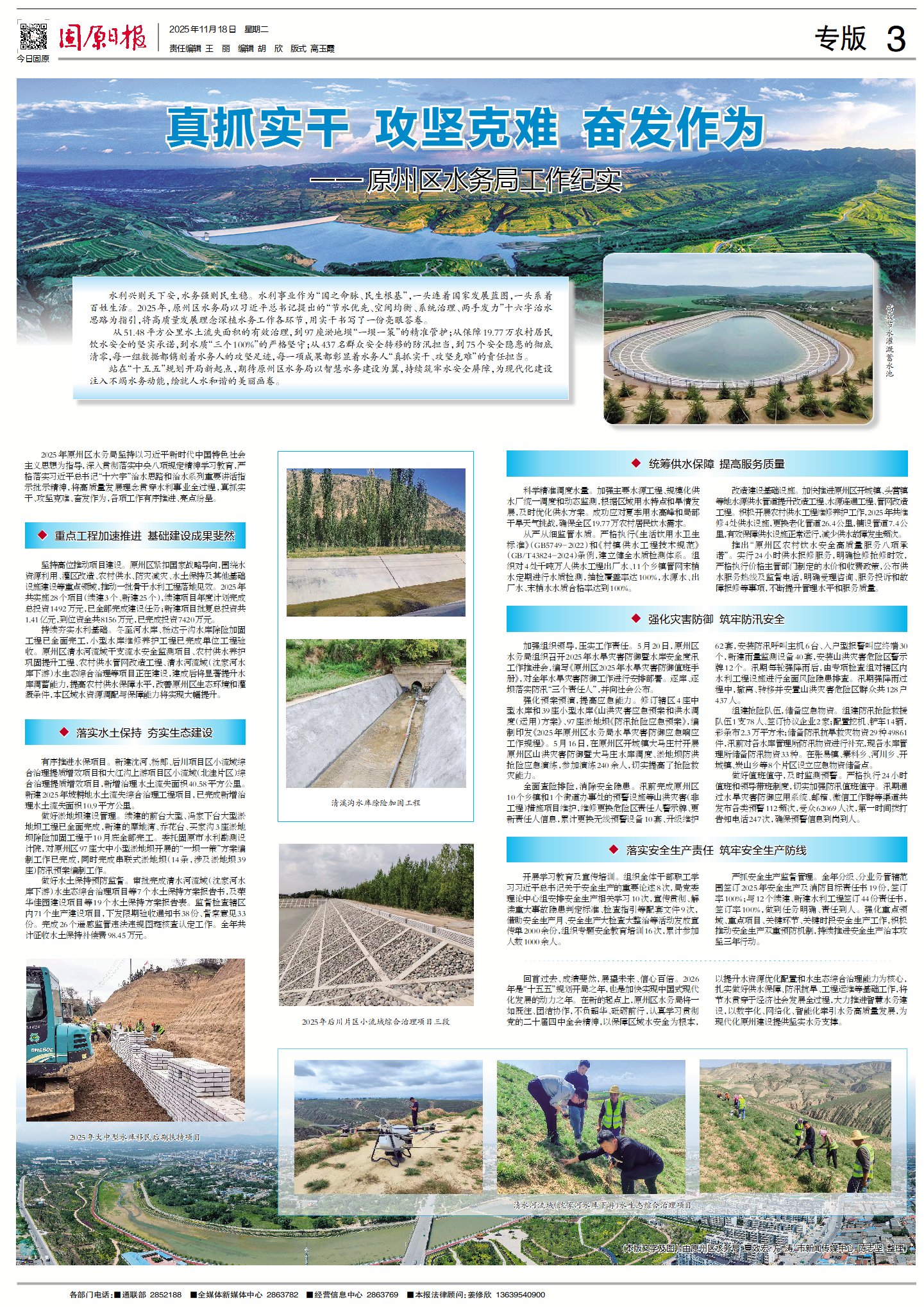 2025年原州区水务局坚持以习近平新时代中国特色社会主义思想为指导,深入贯彻中央八项规定精神学习教育,严格落实习近平总书记“十六字”治水思路和治水系列重要讲话指示批示精神,将高质量发展理念贯穿水利事业全过程,真抓实干、攻坚克难、奋发作为,各项工作有序推进、亮点纷呈。
