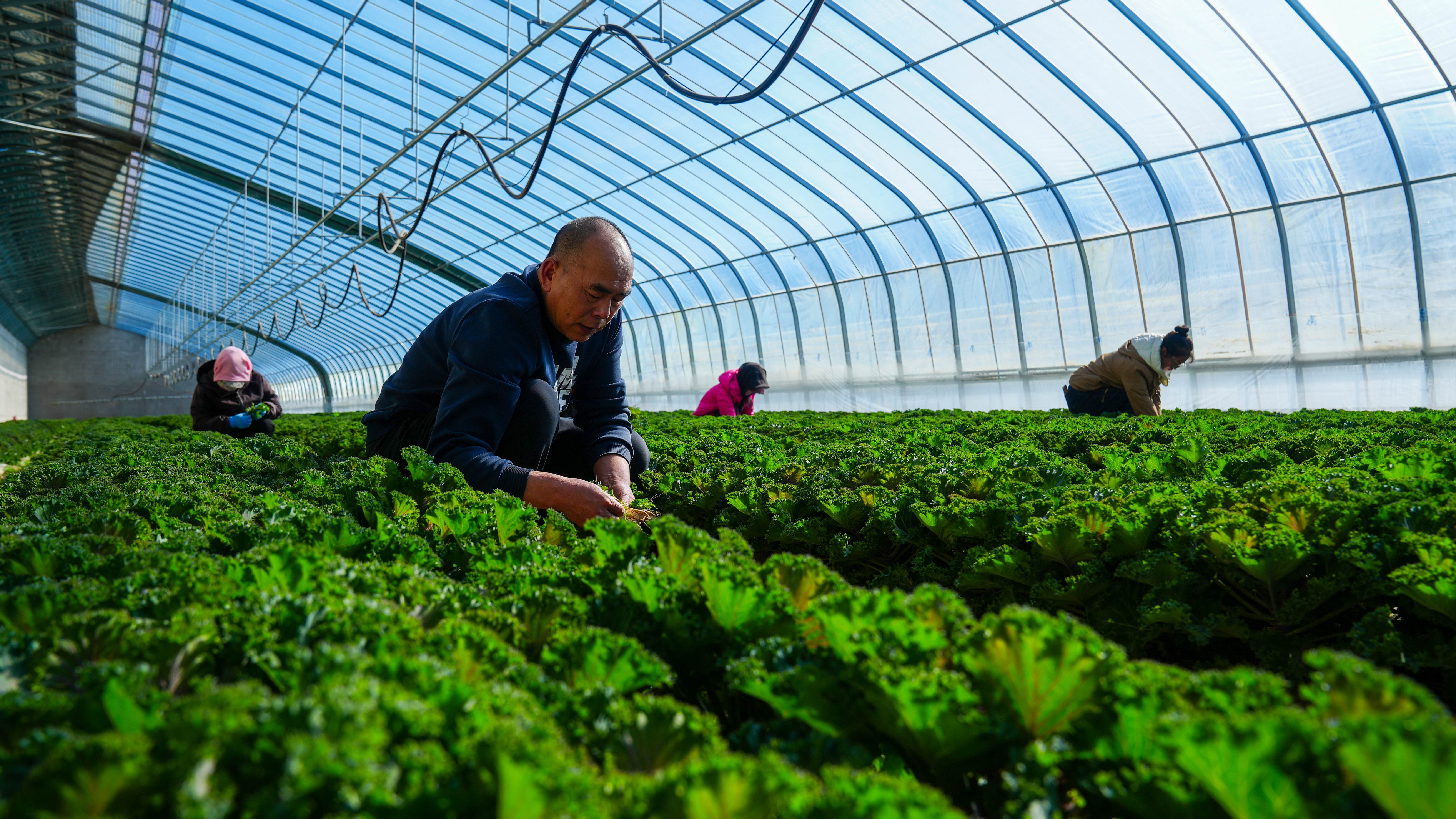 11月20日,西吉县硝河乡隆堡村现代化育苗中心大棚内,羽衣甘蓝试验田绿意盎然,生机勃勃,农户们正忙着整地理墒。