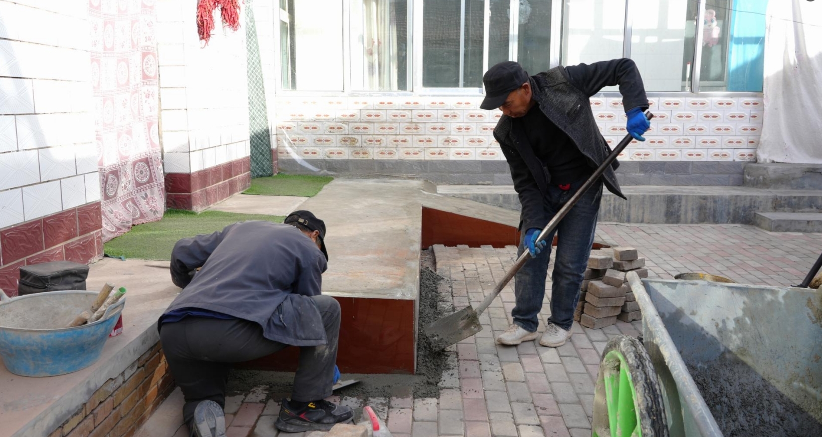 二十里铺村村民王满堂正在和施工人员浇筑入户台阶。看着即将完工的加宽台阶和无障碍坡道,王满堂的脸上写满期待:“以前我家台阶又高又陡,我父亲腿脚不便常年靠轮椅出行,之前临时铺的铁皮坡道一到雨雪天就打滑,每次出门都提心吊胆。现在政府帮我们改造,台阶加宽了,坡道也做了防滑处理,真是解决了我们家的大难题。”