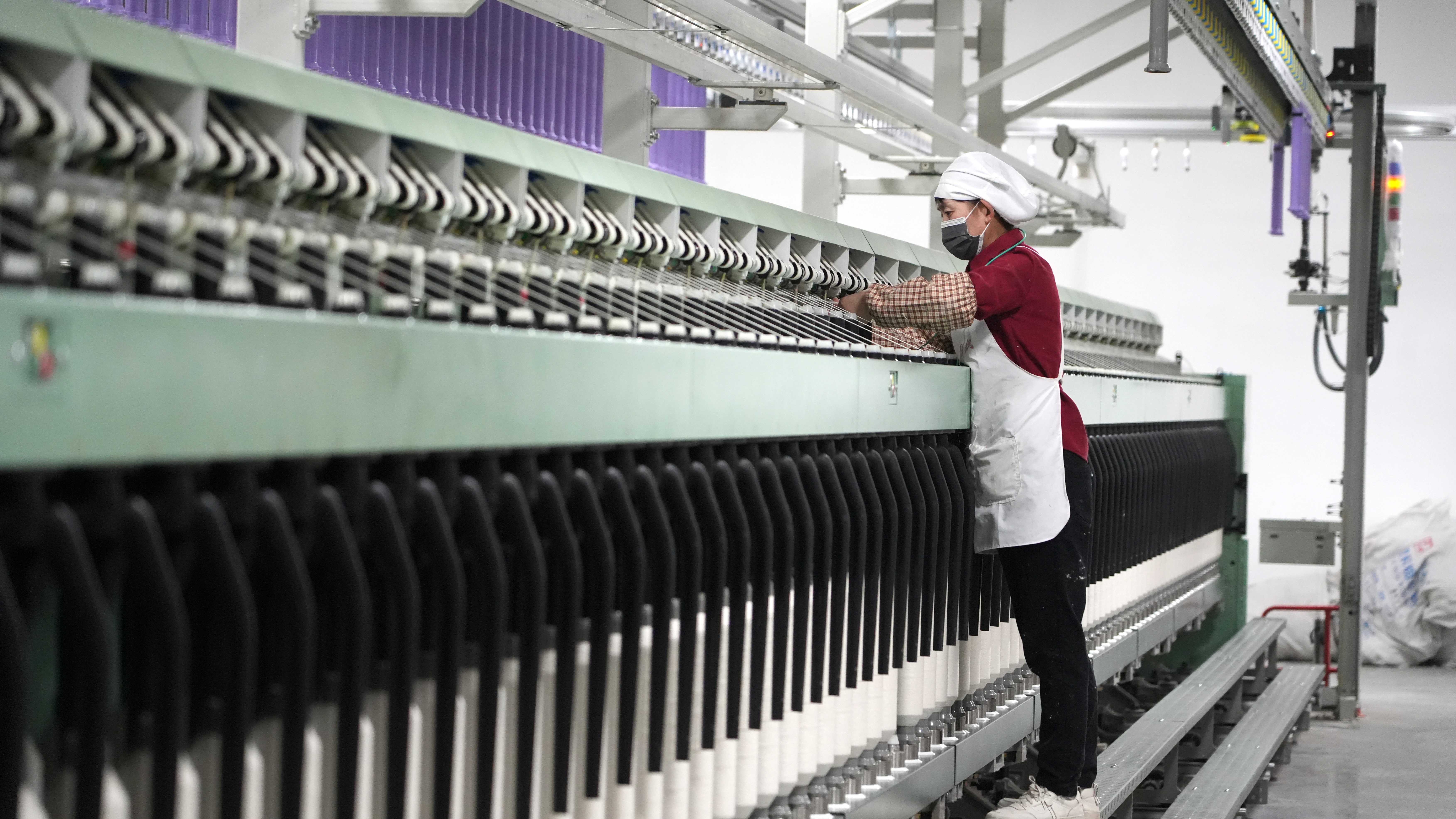 在宁夏美臣纺织科技有限公司的生产车间,另一番产业升级的景象令人瞩目。纱线“搭乘”空中自动化轨道精准输送,机械手快速完成细纱线头接头工作,上百台全自动喷气式高速织机飞速运转,工人通过数字屏即可实时掌握设备运行状态。“以前几个人围着一台机器转,现在一个人能控制多台设备。”副总经理王昊介绍。该公司13万锭高端纺纱及1亿平方米功能性面料生产加工项目,总投资10亿元,达产后预计实现年产值5亿元,带动就业岗位800余个。智能化生产不仅提升了产量和效率,更降低了人工成本和安全风险。
