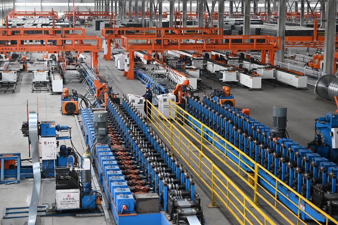 宁夏龙祥新能源科技有限公司光伏支架全自动生产线全力生产。宁夏日报记者左鸣远摄