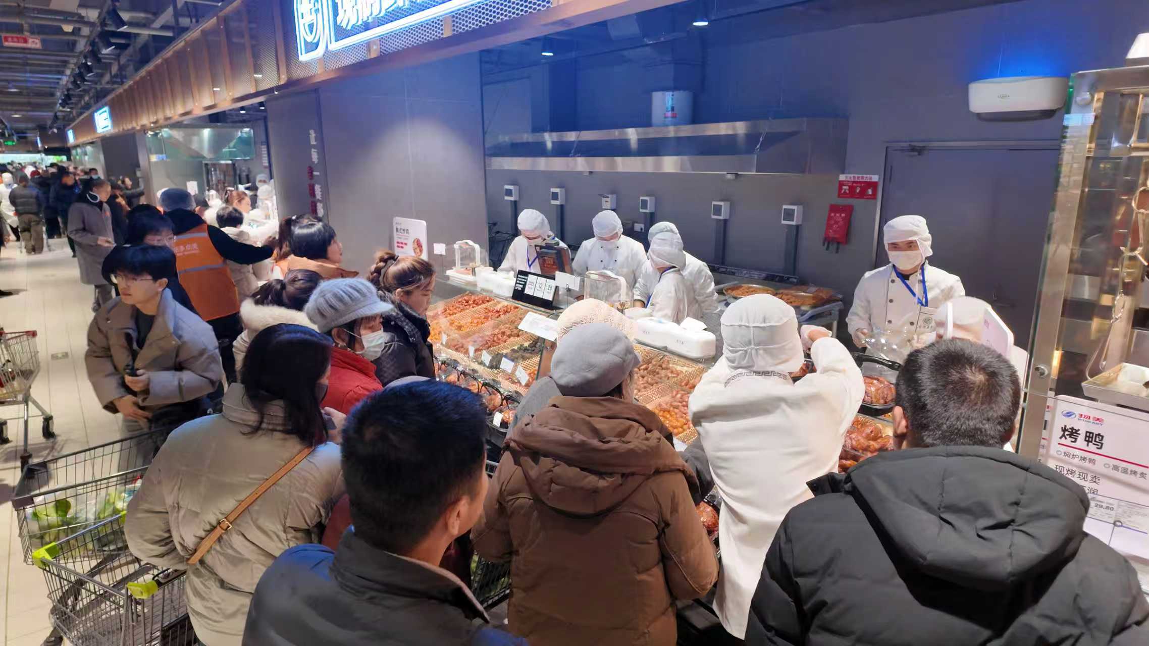 此次调改在空间、商品、服务等方面实现全方位升级。空间设计上,主通道拓宽至5米,降低货架高度并取消强制动线,将高人气品类前置,打造沉浸式购物环境。商品体系是调改核心,80%的商品与胖东来在品类、品牌、价格及供应商层面完全一致,店内设立胖东来专区,精选90种自有品牌商品执行全国统一价。1.2万支单品涵盖4300个小分类,践行“宽类窄品”策略,每个细分品类仅保留2至3个最优选择。同时大幅扩增烘焙和熟食现制区,三文鱼、网红肉蛋堡等人气商品一应俱全,还特设宁夏传统小吃区和固原农特产品甄选区,胡麻油、六盘山牛肉等本地特产集中亮相。果切环岛提供应季鲜果现切服务,水产区可现捞沥水并新增免费宰杀服务,精准对接消费需求。