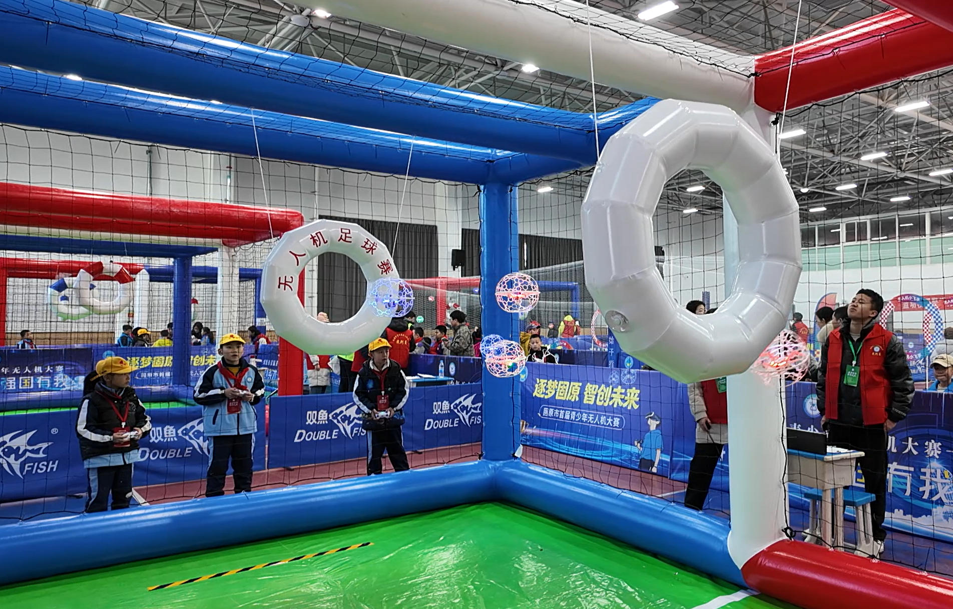 赛场内气氛紧张而热烈。在个人越障竞速赛中,小选手们手握遥控器,全神贯注地操控无人机穿梭于高低错落的圆环之间,灵巧绕障、精准降落,引得观众阵阵赞叹。足球无人机对抗赛则更具策略性与协作性,参赛队员通过实时沟通、协同攻防,操纵无人机完成“射门”“防守”等动作,在激烈对抗中体验科技与体育融合的乐趣。“参加这个项目不仅开阔了眼界,也让我和同学们的配合更加默契。”参赛选手刘昊宇在赛后兴奋地表示。