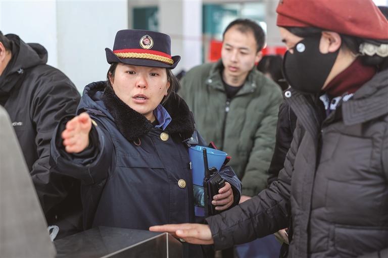 兰州铁路局固原车务段工作人员指导旅客检票进站。