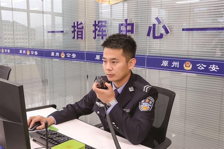 市公安局原州区分局情报指挥中心工作人员进行远程警力调度。