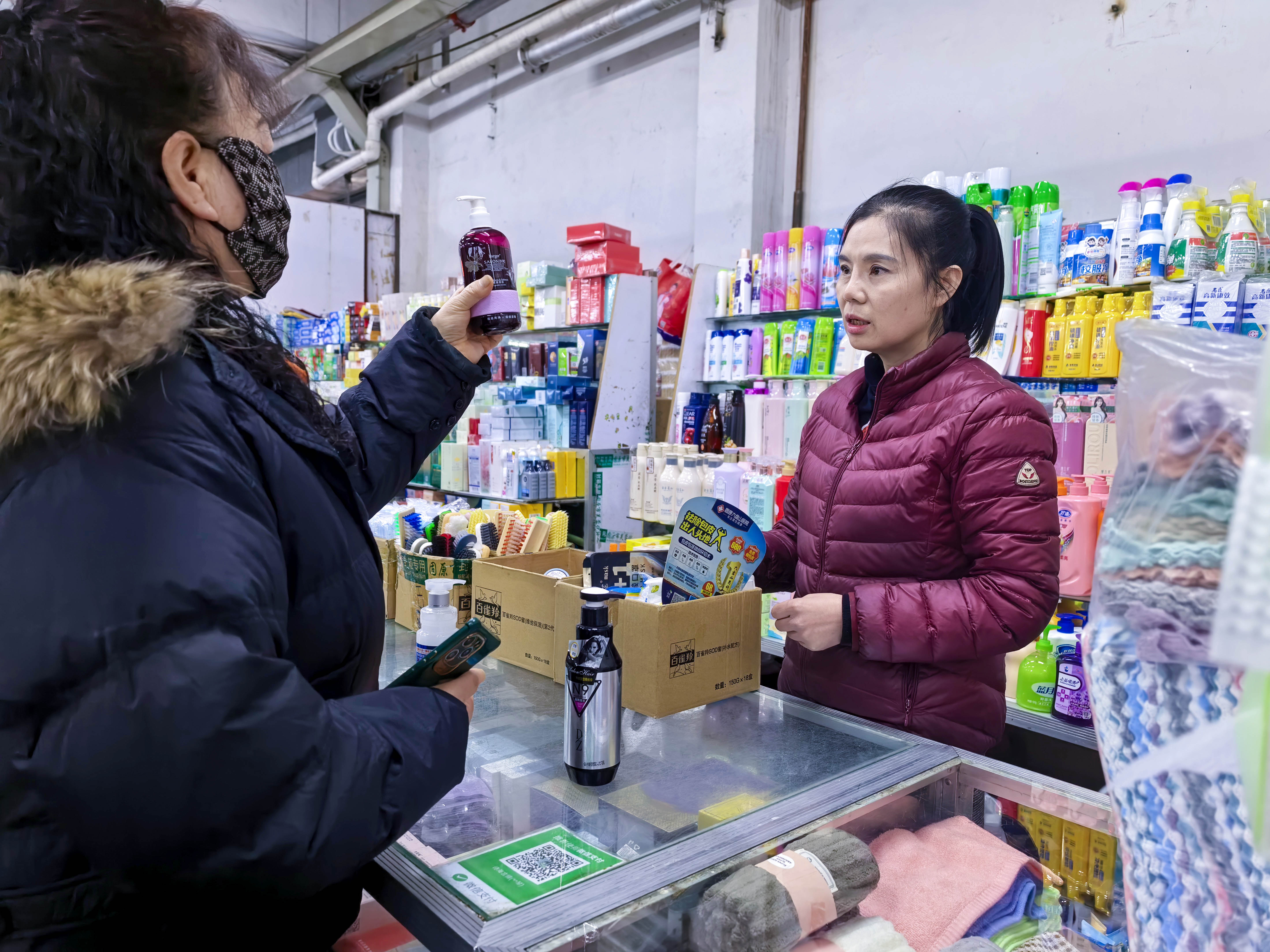 她也真切感受到人们的消费观变了很多。“以前买日用品,特别简单。买个护肤品,就是一瓶面霜或者一盒雪花膏。现在不一样了,大家讲究健康,讲究品质,消毒的、清洁的分得清清楚楚,护肤品也开始一套一套买。大家对国货也越来越认可,”她又指了指货架上的百雀羚,“像这个,老牌子,靠得住。还有万紫千红,前些年好像都看不见了,这几年又回来了,不光是中老年人喜欢,好多年轻人也爱买。百雀羚也是,老牌子,靠得住,价格实在,卖得特别好。”