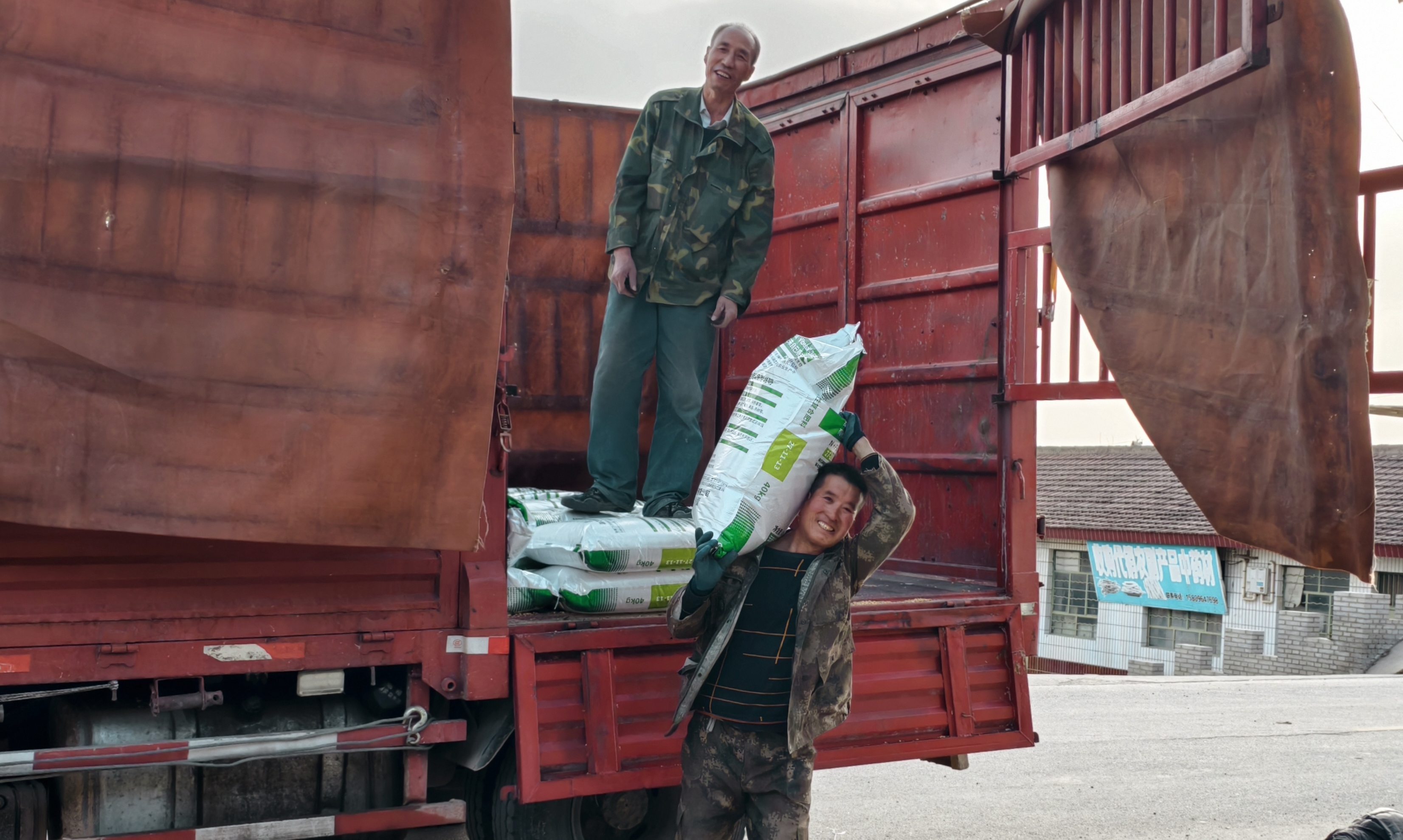 长城村杨鸿升家的化肥销售点上很是忙碌,工人们正从一辆卡车上卸货,刚从彭阳县城运来的12吨化肥是今年销售点上的首批农资。
