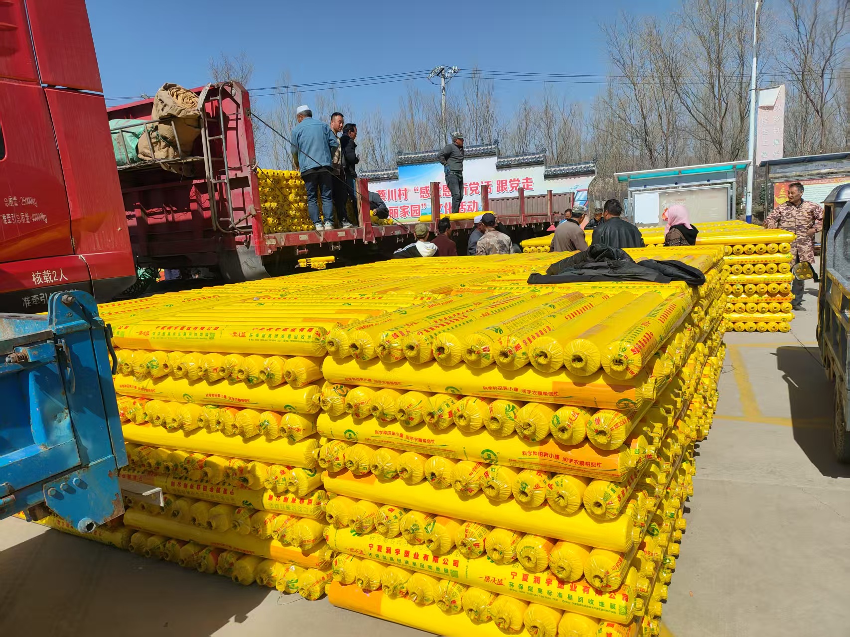 整齐码放的地膜。