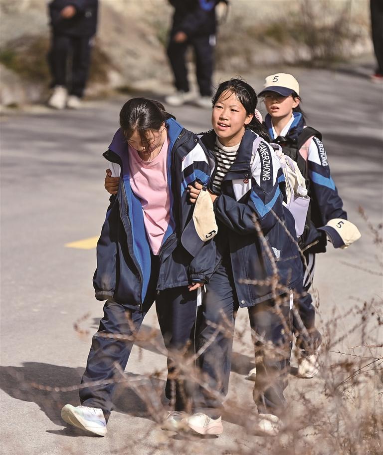 “孩子们的体力比想象的好得多。”她喘了口气,边走边说,“最让我敬佩的是他们内心的坚持。凝聚力特别好,很团结,冲劲也足。”