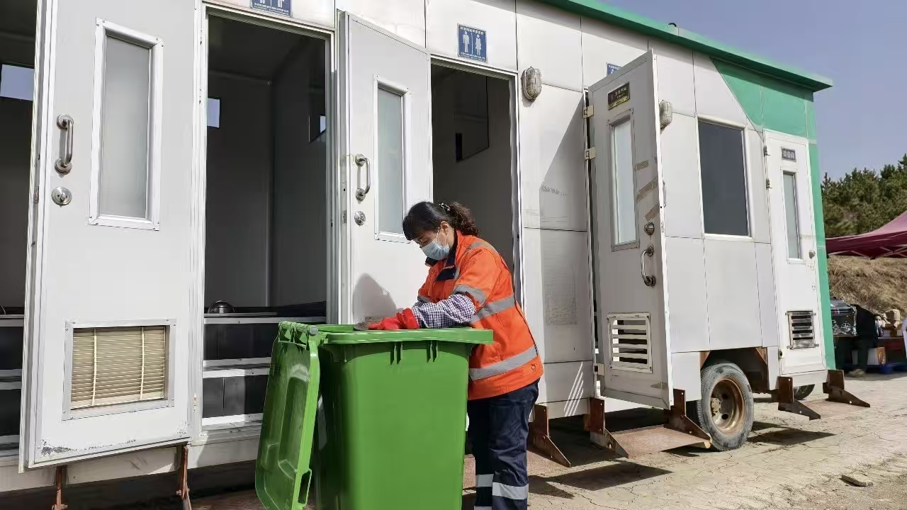 她打着手电,打开山顶移动公厕的门,里里外外擦得干干净净。“孩子们走了一路,经过时肯定要上厕所,我得弄得再干净一点。”