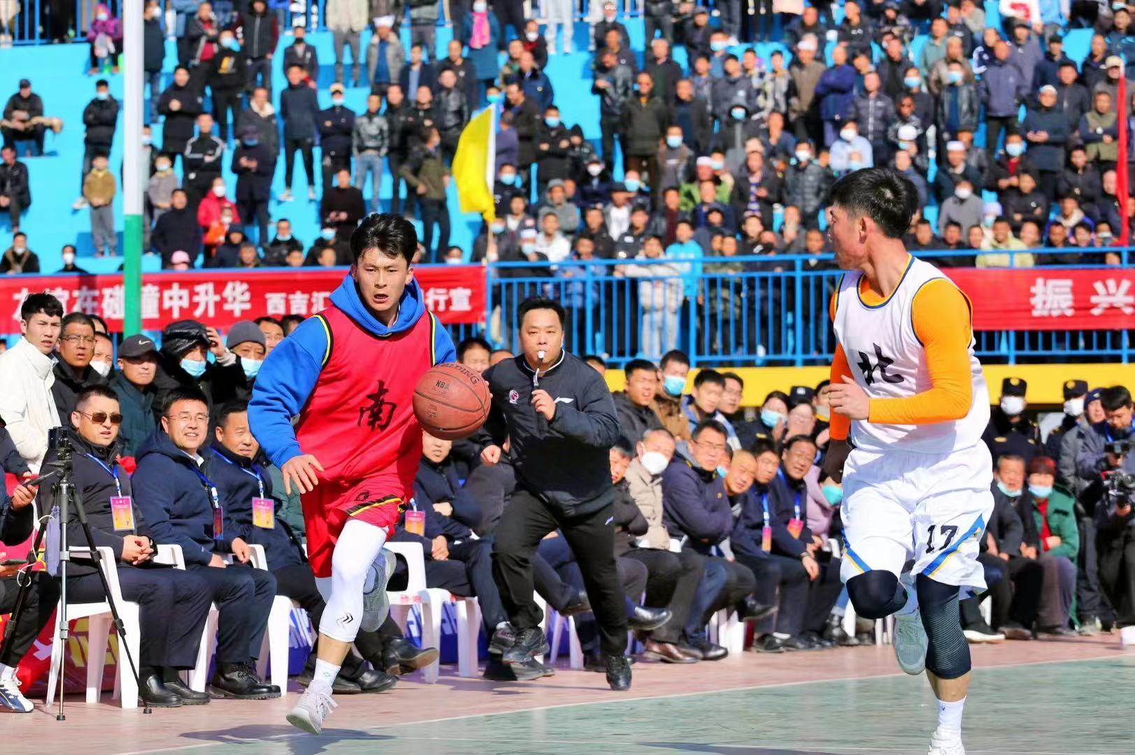 2023年2月4日 宁夏西吉县第六届农民篮球争霸赛开幕式后首场比赛——宁夏南北明星对抗赛在西吉县篮球公园开赛。