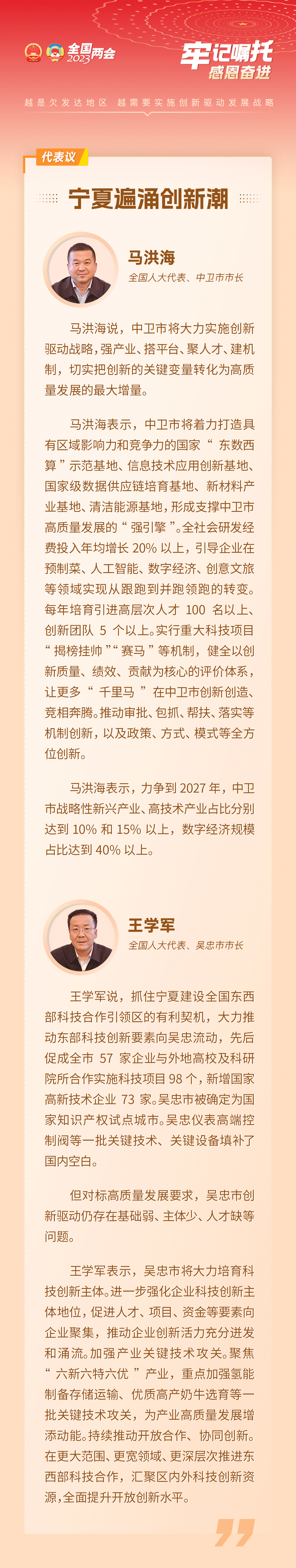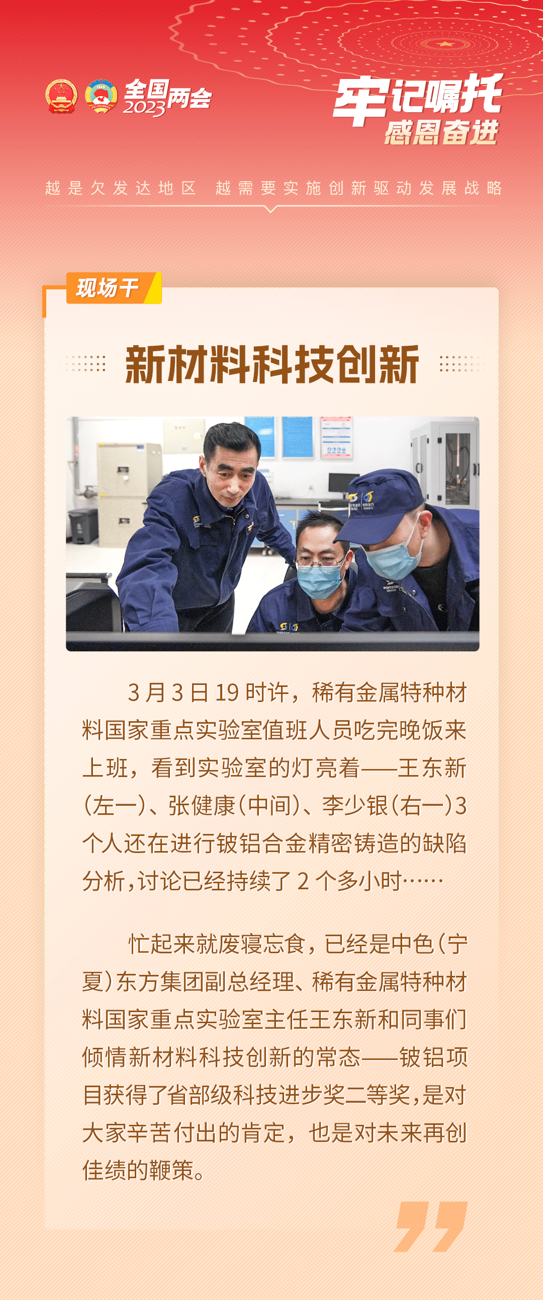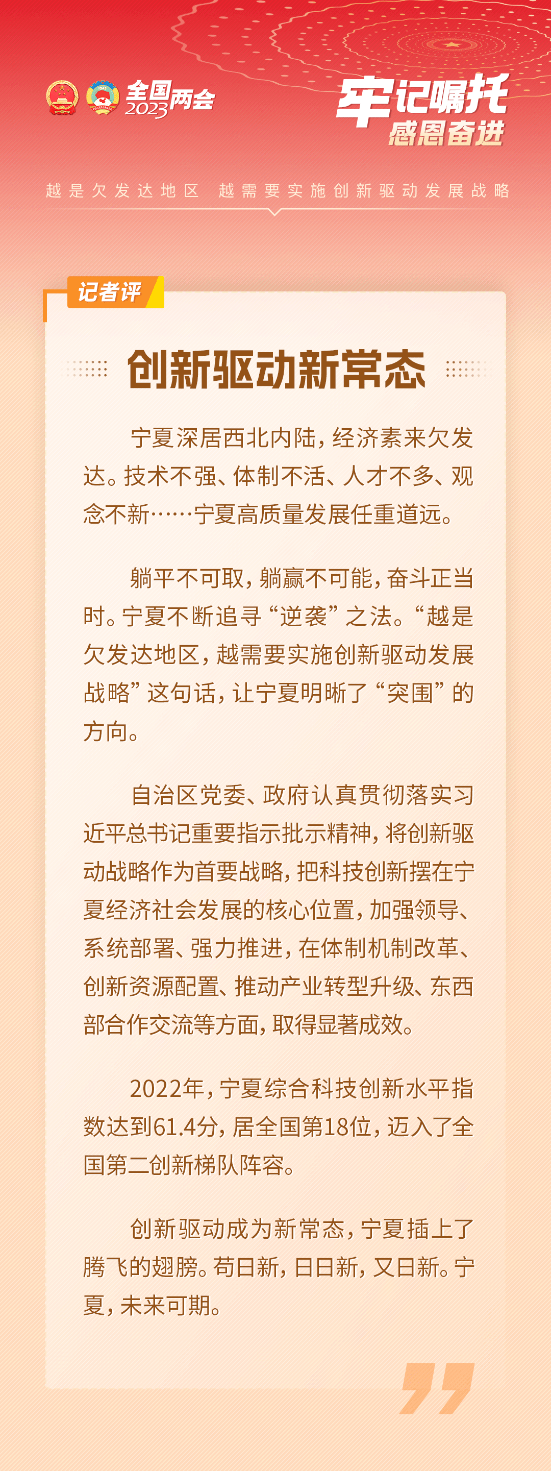 宁夏广大干部群众牢记总书记嘱托,深入实施创新驱动发展战略,推进东西部科技合作,解决创新资源匮乏、创新能力不足的问题,形成带动产业升级、经济增长的关键“增量”,让创新成为宁夏发展的亮丽底色和重要支撑。