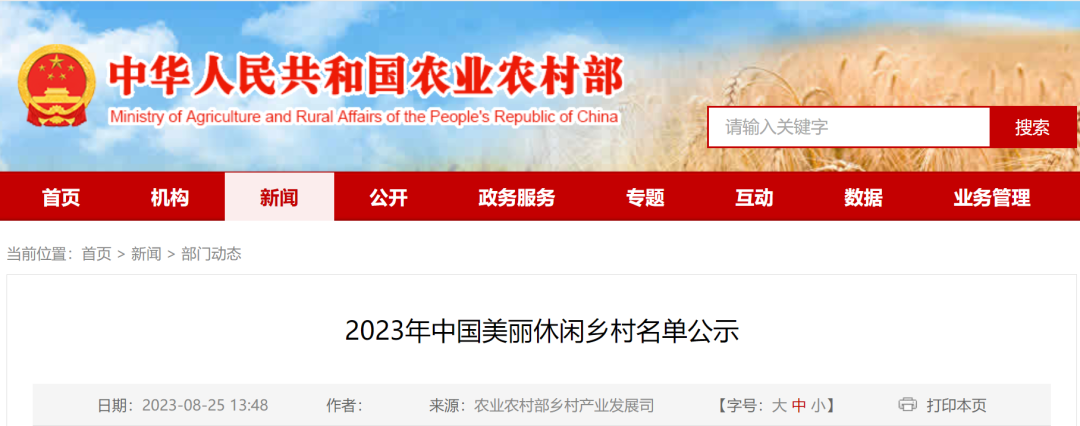 农业农村部官网公示2023年中国美丽休闲乡村名单